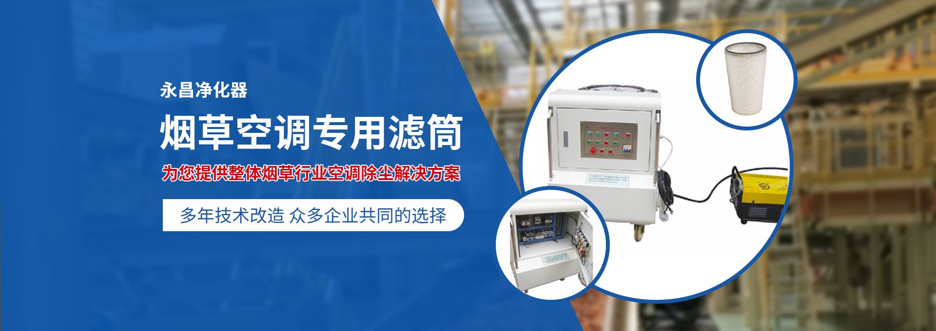 新鄉(xiāng)市永昌凈化器有限公司是生產(chǎn)煙草行業(yè)空調(diào)除塵專用濾筒的企業(yè)。注冊(cè)資金1000萬元。已通過ISO9001國際質(zhì)量管理體系認(rèn)證。對(duì)產(chǎn)品有嚴(yán)格的管理制度和售后服務(wù)。我公司以誠信、負(fù)責(zé)、守信譽(yù)、重質(zhì)量的精神所生產(chǎn)的產(chǎn)品,近幾年來在煙草行業(yè)受到廣泛應(yīng)用,并受到用戶的一致好評(píng)?! 囊痪啪潘哪暌詠頌闊煆S的空調(diào)設(shè)備服務(wù)。十幾年來,我們不斷走出去請(qǐng)進(jìn)來學(xué)習(xí)新技術(shù)。定期到用戶那里咨詢情況:互相交流,認(rèn)真聽取寶貴意見,不斷提高產(chǎn)品質(zhì)量。從經(jīng)濟(jì)和安全,方便的角度出發(fā),根據(jù)煙廠濕度大的生產(chǎn)環(huán)境和濾筒收集到的含酸堿、氧化劑的粉塵。在空調(diào)箱工作狀態(tài)下我們頂著巨大的風(fēng)壓危險(xiǎn)在箱內(nèi)停留了幾分鐘,認(rèn)真查看濾筒工作情況,發(fā)現(xiàn)濾筒有并死狀態(tài),造成濾筒不過濾、不過風(fēng)、壓差高的現(xiàn)象。經(jīng)幾十次試驗(yàn)分析,在標(biāo)本兼治的原則下,有針對(duì)性的解決了這一問題。 我公司針對(duì)煙廠制絲、卷接包、混絲間、儲(chǔ)絲房、冷卻床、梗膨化等不同的生產(chǎn)環(huán)境,
